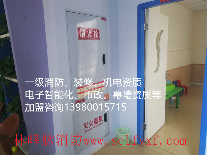 林峰脉俞建安装工程有限公司拥有一级消防。一级装修,一级机电、电力设施承装(承修、承试)资质,电力工程用承装修饰资质,机电资质,输变电资质等资质,专业从事消防设计,消防施工,消防设施安装。消防改造,消防设施维护。消防报建、消防技术咨询、消防验收、消防办理等,对自动喷淋灭火系统、火灾自动报警系统、电气火灾报警,通风系统、防排烟系统、可视报警系统、消防防火、消防电器,防火门监控系统,安全疏散系统,气体灭火系统等消防工程事务非常精通,选择加盟我们开消防分公司,资质过硬,技术过硬,承接工程更有保障,联系热线13980015715。